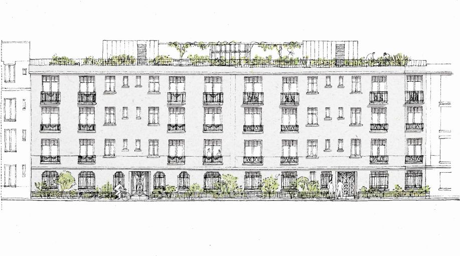 Les façades sur rue des immeubles sont restituées dans leur matérialité d’origine. Les percements existants sont à peine retouchés.